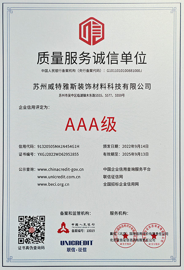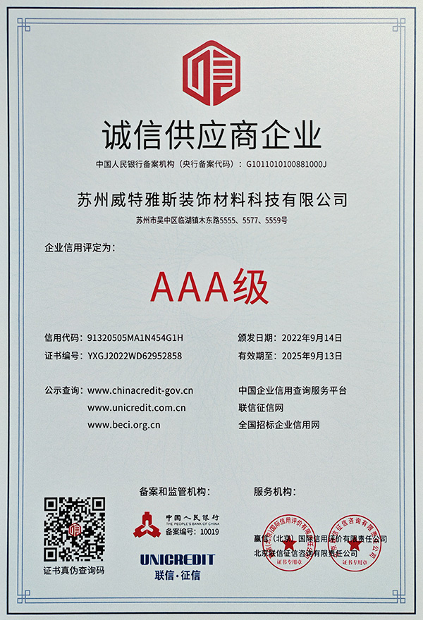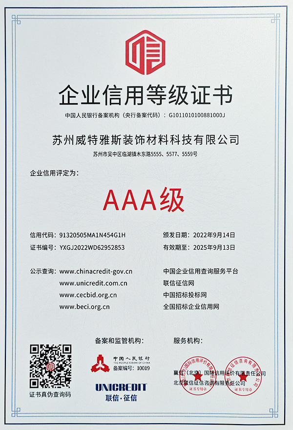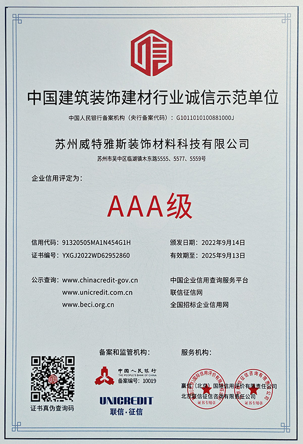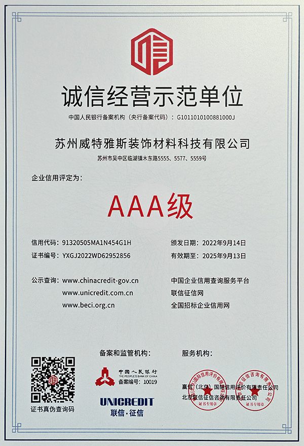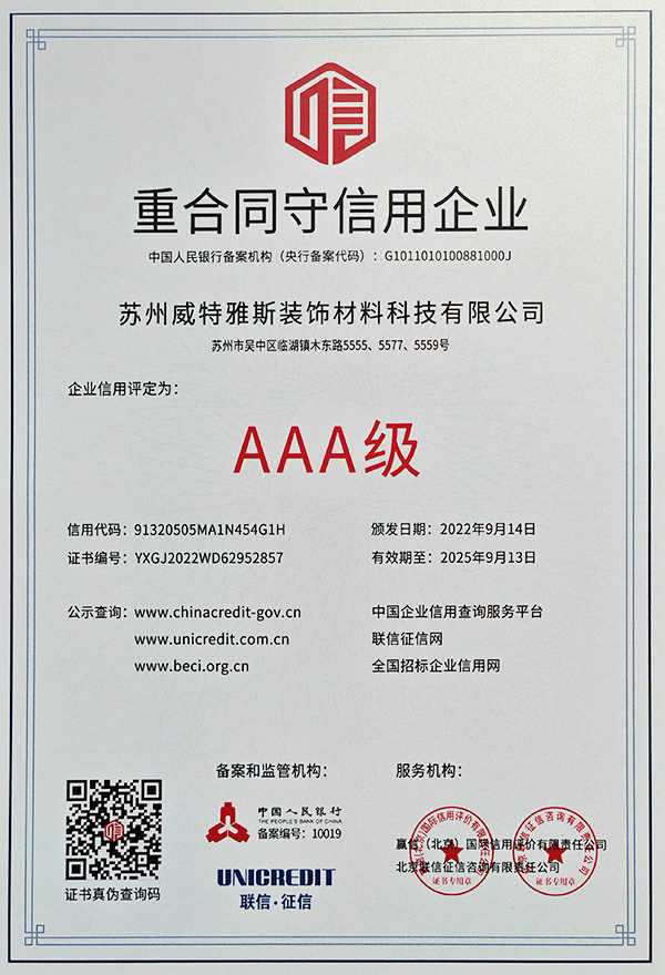 蘇州威特雅斯裝飾材料科技有限公司位于風(fēng)景秀麗的名城蘇州,從業(yè)20年來(lái),在行業(yè)內(nèi)享有良好聲譽(yù)。